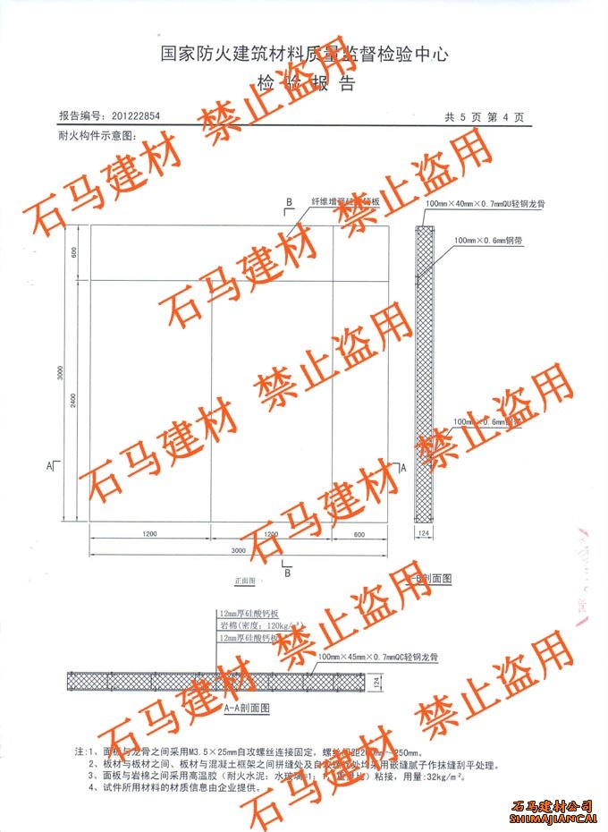 石馬牌硅酸鈣板檢測報告